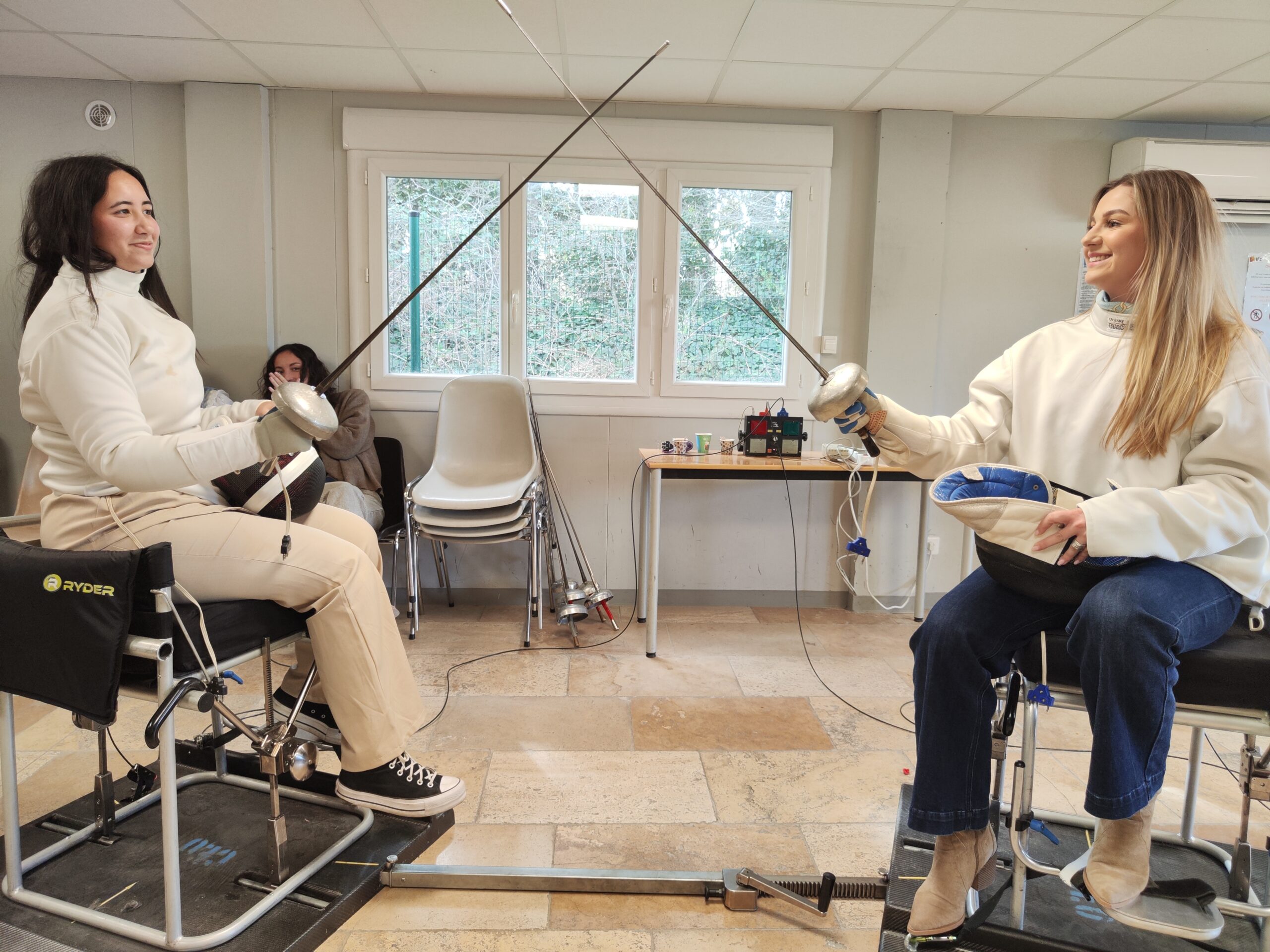 Ce matin, le Cercle d’escrime orangeois a sensibilisé les étudiants à l’escrime handisport chez notre partenaire Ifc Avignon.